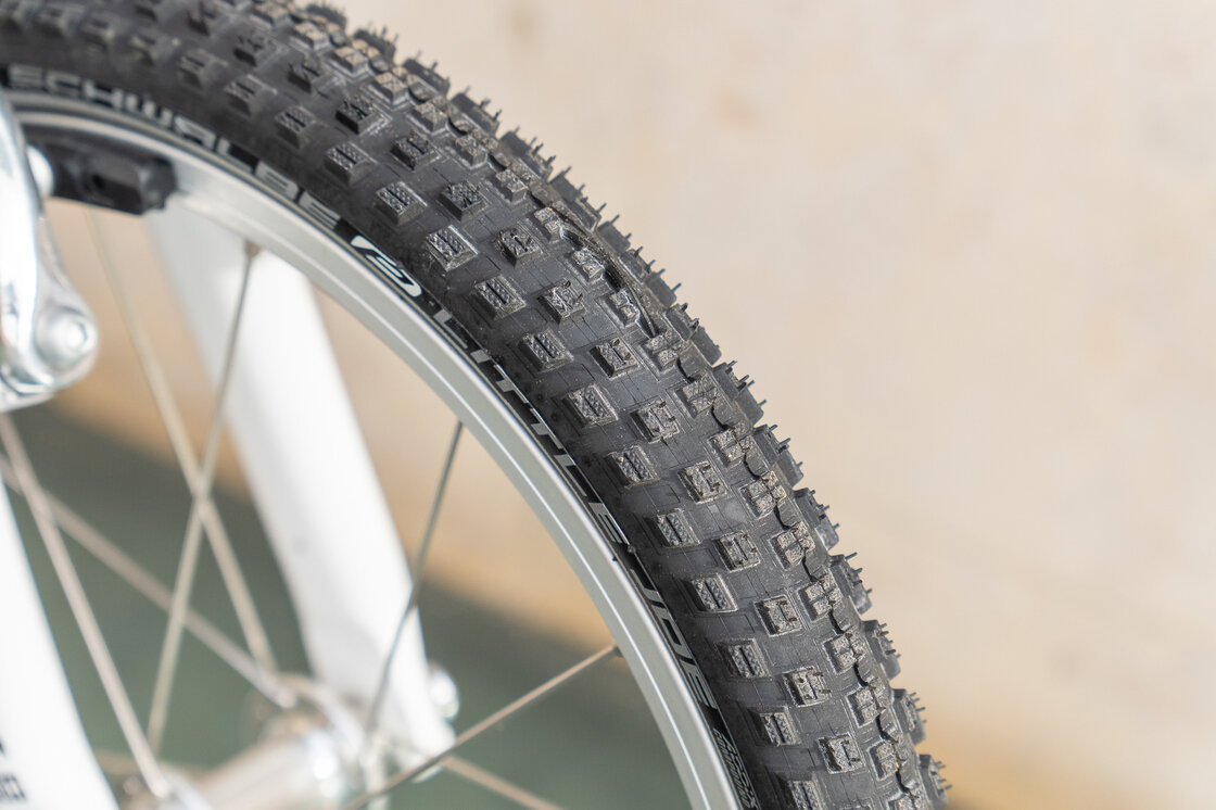 Opony Schwalbe LITTLE JOE 16 x 1,4” o niskich oporach toczenia, doskonałej przyczepności i amortyzacji. Obręcze w rowerku dziecięcym woom 3 zostały wykonane z lekkiego aluminium. Dzięki zastosowaniu wąskich piast oraz śrub montażowych na klucz typu imbus zminimalizowano ryzyko otarcia lub rozcięcia skóry na nogach od ostrych krawędzi. Obręcze zostały wyposażone w 16 szprych Niro o grubości 1,8 mm. Wewnątrz opony znajduje się klasyczna dętka posiadająca wentyl samochodowy.