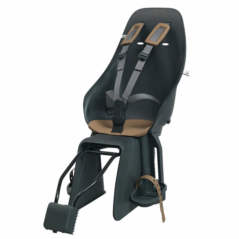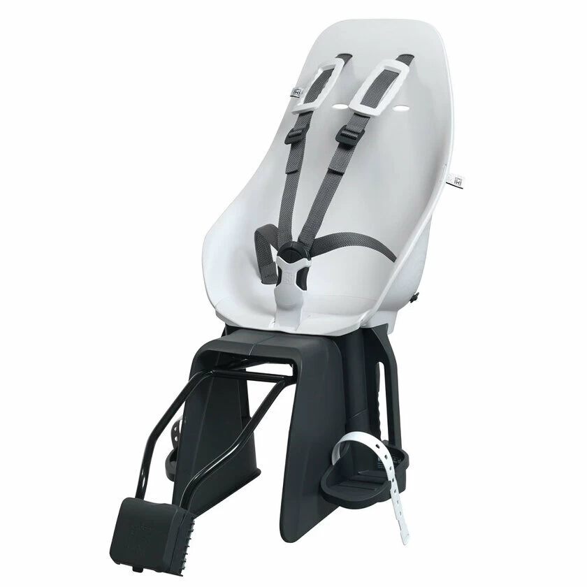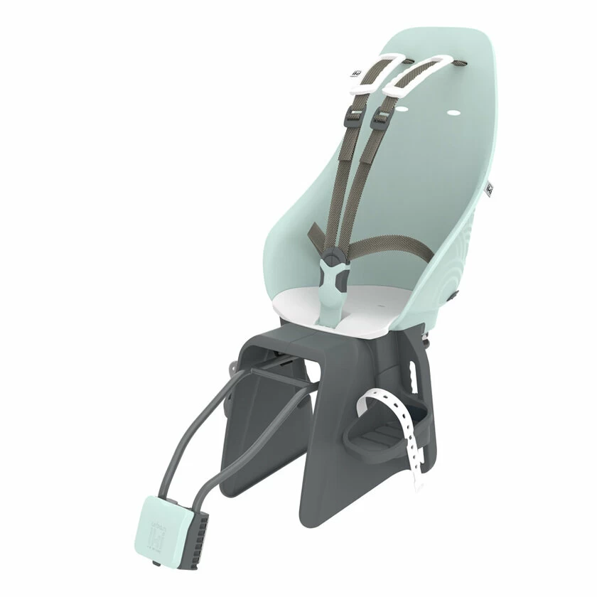 Zabudowany fotelik mocowany do ramy, który prezentuje swoje holenderskie wzornictwo i japońską jakość. Ergonomiczny kształt pozwoli na wygodne ułożenie się w foteliku, dodatkowo miękka poduszka zagwarantuje komfortowy przejazd. Pasy bezpieczeństwa zostały doposażone w miękkie nakładki na ramiona, które zapobiegają powstawaniu otarć i ucisków. Za płynność jazdy odpowiada system montażu, który pochłania drgania powstałe w wyniku nierówności nawierzchni. Jednocześnie dzięki zastosowaniu technologii Click & Go, zakładanie i ściąganie fotelika zajmuje kilka sekund.Regulacja