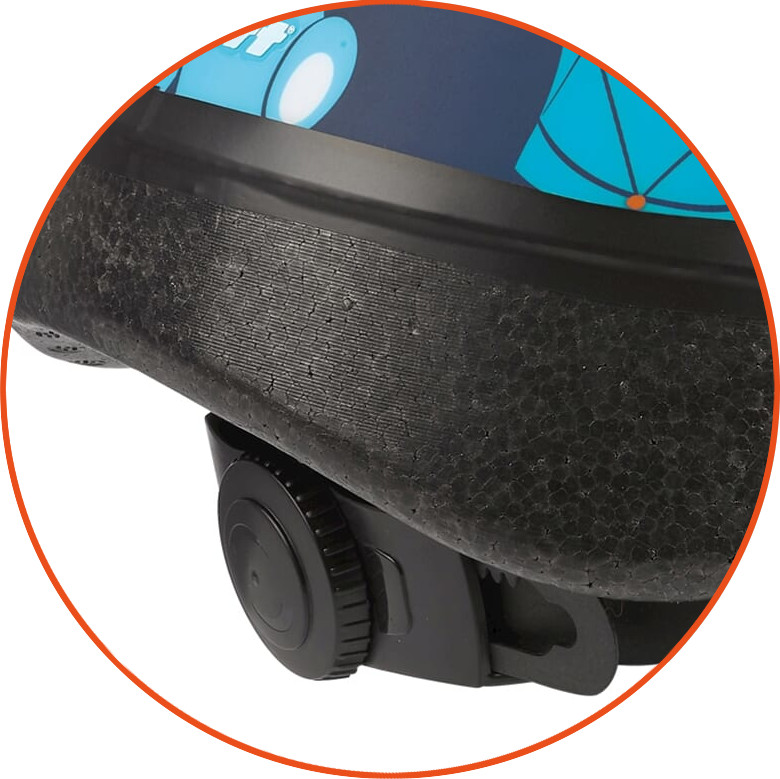 • Specjalna regulowana obręcz wewnątrz, pozwala dopasować kask do główki dziecka