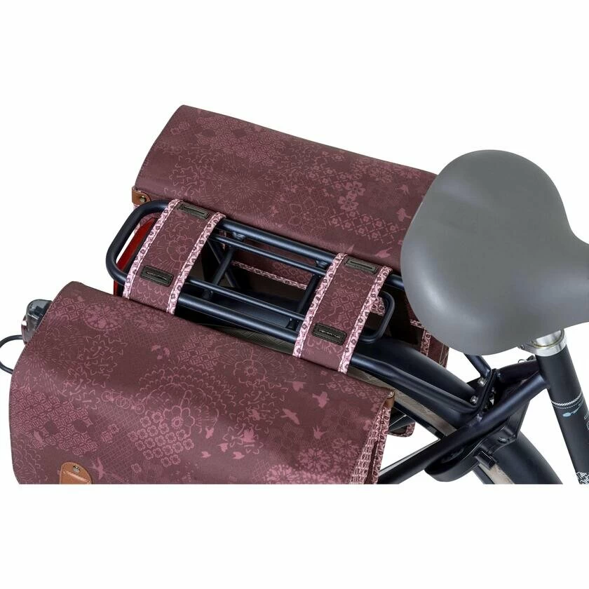 Podwójna sakwa rowerowa Basil Boheme przeznaczona jest do stałego montażu na bagażniku rowerowym. Całkowita pojemność sakwy wynosi 35 litrów, a wymiary pojedynczej sakwy to 35 × 15 × 31 cm, dzięki czemu idealnie komponuje się z większością rowerów miejskich i trekkingowych pozwalając na łatwe i równomierne rozdysponowanie zawartości. Sakwa została wykonana z wodoszczelnego materiału co w połączeniu z klapą chroni przewożone wewnątrz rzeczy przed zamoknięciem, pyłem i brudem. Oryginalny design wpasowuje się w rowery zarówno miejskie jak i trekkingowe, komponując się ze stylistyką retro i tą bardziej nowoczesną. Każdy znajdzie tu coś dla siebie. Dodatkowo, torba została wyposażona w odblaskowe aplikacje, których zadaniem jest zwiększenie Twojej widoczności na drodze.
