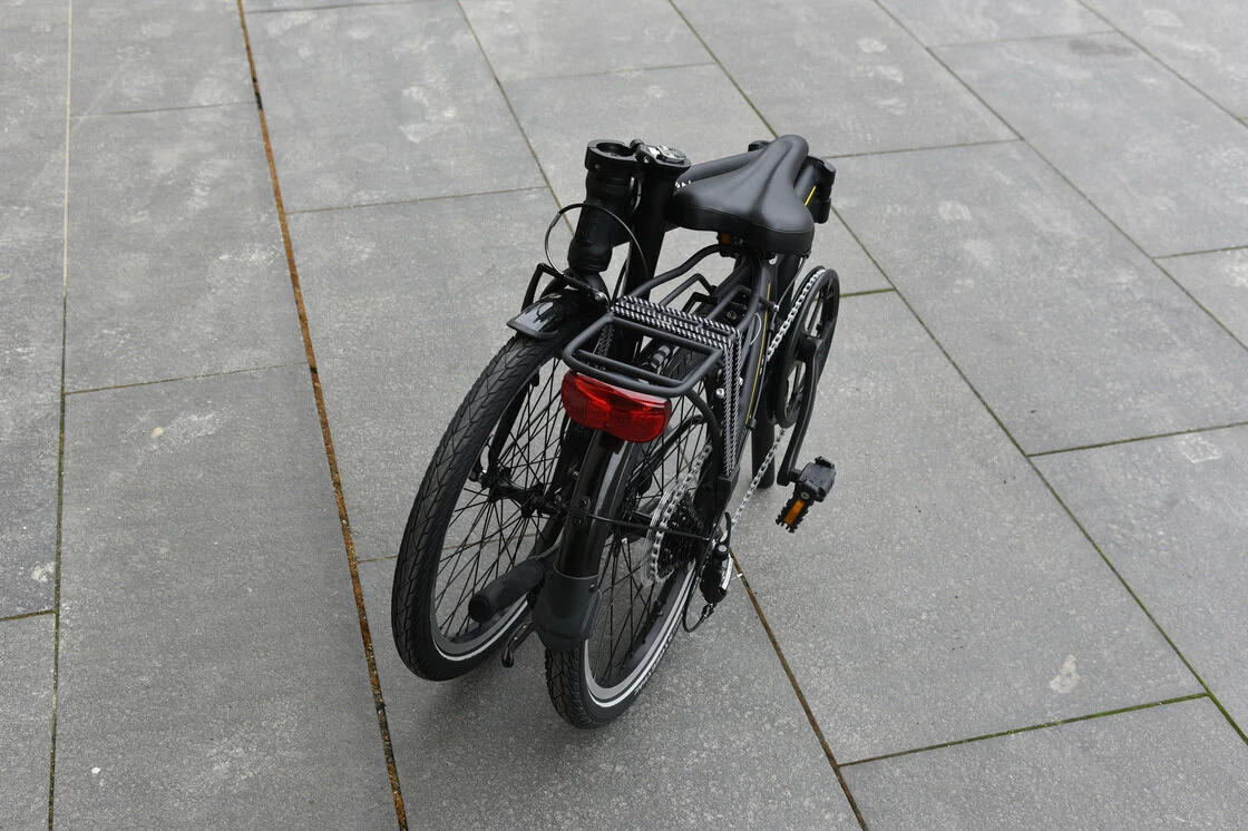 Rower po złożeniu ma wymiary 66x83x35 cm (wysokość x długość x szerokość), co bardzo ułatwia jego transport. Wszystkie ruchome elementy mają zaznaczoną podziałkę oraz miejsca optymalnych wysokości do złożenia – w przypadku osób wysokich może być konieczne obniżenie siodełka, aby osiągnąć takie rozmiary w formie złożonej. Mała ilość wymaganej powierzchni to świetne rozwiązanie dla osób, które nie posiadają garażu lub piwnicy do przechowywania roweru, jeżdżą rowerem do pracy lub dojeżdżają do niej komunikacja miejską. Rama wykonana z aluminium Dalloy Stop Dalloy oferuje o 20% większą wytrzymałość niż stop 6061 przy jednoczesnej redukcji wagi dzięki procesowi cieniowania. Rury są grubsze przy łączeniach a cieńsze w miejscach o mniejszych naprężeniach. Dalloy Aluminium jest patentem opracowanym przez założyciela marki, Dr. Davida Hon.