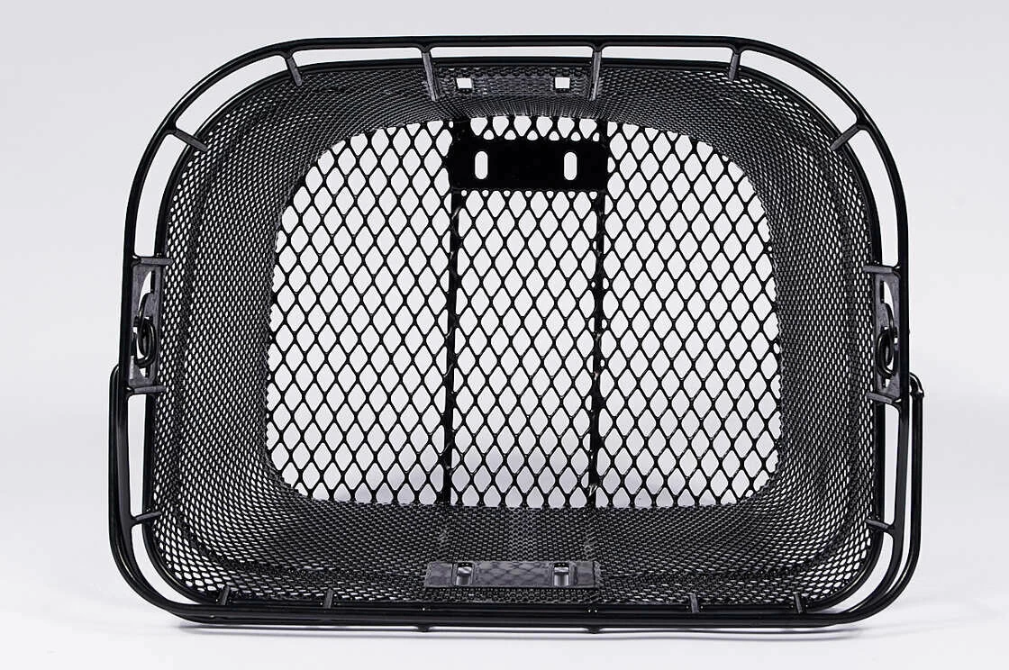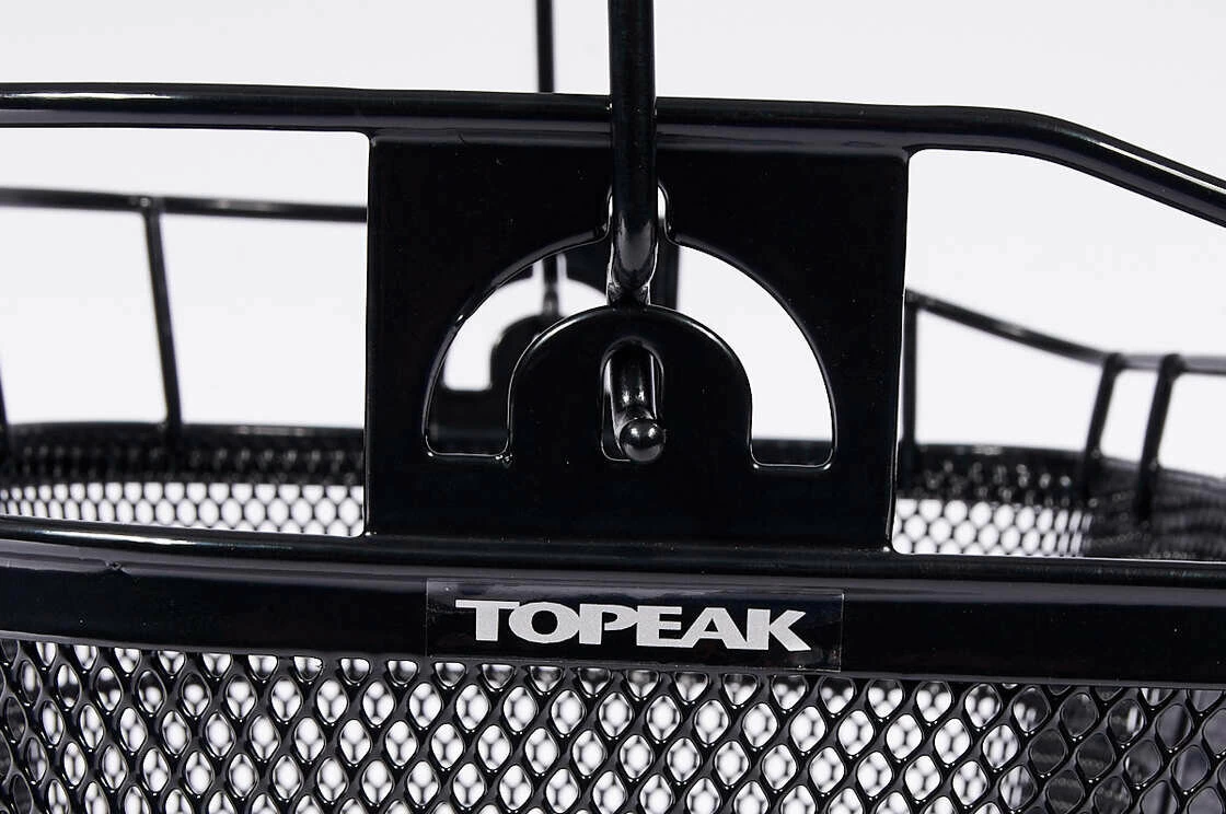 Klasyczny kosz wykonany ze stalowej siatki z dużym logo firmy Topeak