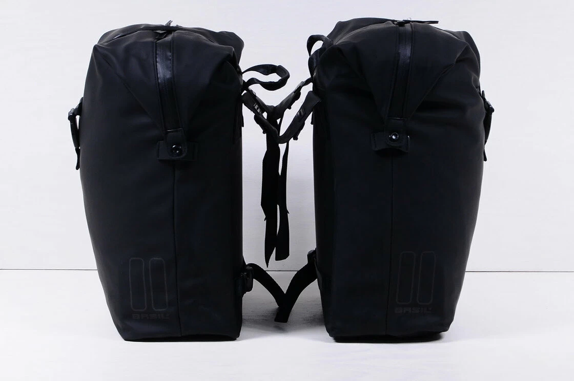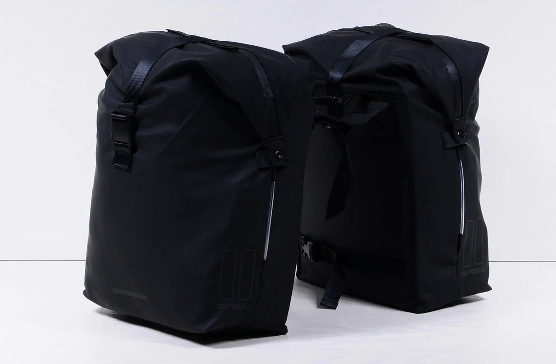 Podwójne sakwy rowerowe Basil Nordlicht Absolutna nowość holenderskiej marki Basil na sezon 2021. Sakwy są wykonane z miękkiego, całkowicie wodoodpornego materiału. Projektanci inspirowali się minimalizmem oraz 100% miejskim stylem. Sakwy SoHo posiadają wbudowaną lampkę dla zwiększenia bezpieczeństwa podczas jazdy po zmroku.