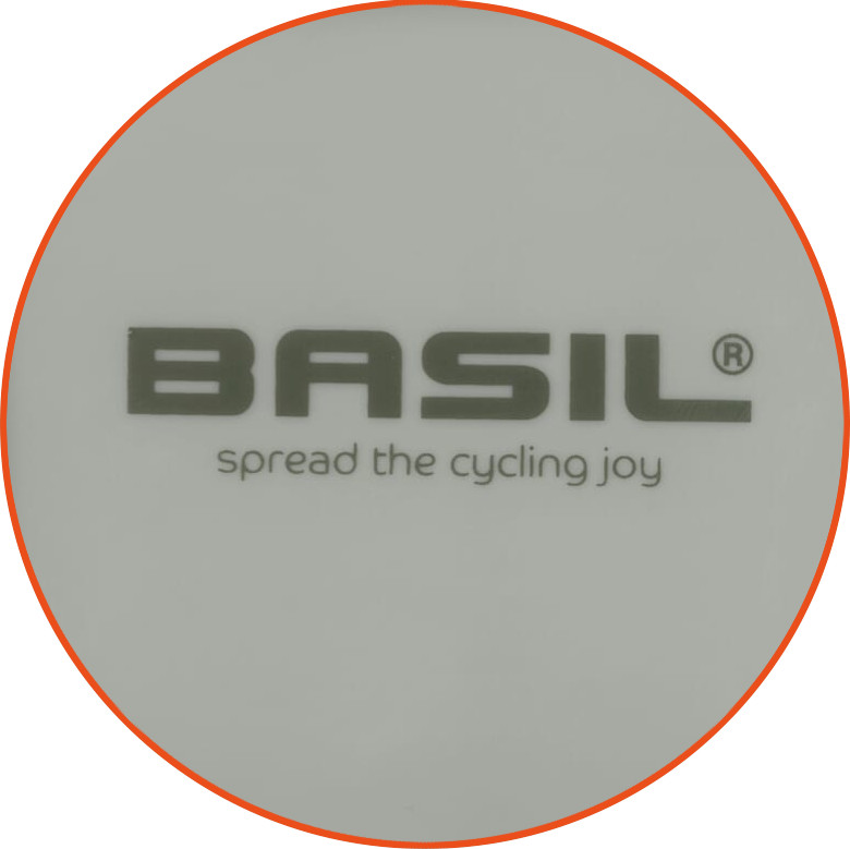 Modny design wykończony dużym, odblaskowym logo firmy Basil