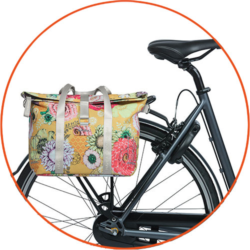 Basil Bloom Field to wspaniała torebka i świetna sakwa rowerowa. Dzięki zastosowaniu trzech systemów mocujących możemy ja umieścić z przodu lub z tyłu roweru wedle naszego widzimisię. Pojemność torby pozwala na zabranie ze sobą najważniejszych rzeczy i małe zakupy. Od zewnątrz torba to prawdziwe dzieło sztuki. Przepiękny kwiatowy wzór w dwóch wariantach do wyboru, prezentuje się niesamowicie. Całość została wykonana z poliestru pochodzącego z recyklingu. Dodatkowo materiał jest wodoodporny co w połączeniu ze zwijanym zamknięciem gwarantuje ochronę zawartości przed nagłym oberwaniem chmury.