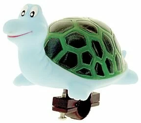 Przyjazny żółwik stanie się nieodłącznym towarzyszem zabaw młodego cyklisty. Wesoły zwierzaczek wydaje dźwięk po ściśnięciu sprawiając przy tym masę frajdy. Trąbka została wykonana z tworzywa sztucznego, czemu zawdzięcza swój dobry wygląd i zachowanie kształtu. Mocowanie do roweru jest bajecznie proste dzięki zastosowaniu plastikowej obejmy na śrubę, klakson pasuje do wszystkich standardowych kierownic rowerowych o średnicy 18 - 22,2 mm.