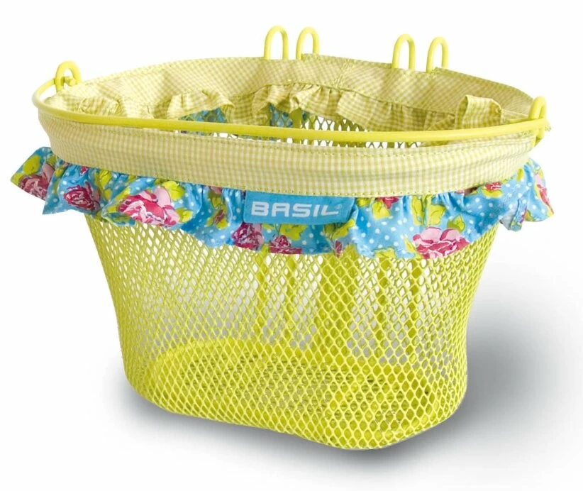Dziecięcy koszyk rowerowy Basil JASMIN to pełen pozytywnych kolorów koszyk przeznaczony do zamontowania na kierownicy rowerka Twojej pociechy. Wykonany ze stalowej siatki jest bardzo wytrzymały i odporny na korozję. Delikatny owalny kształt będzie się wspaniale prezentował na dziecięcym rowerku. Dodatkowa dekoracja sprawia, że koszyk jest jeszcze bardziej uroczy.