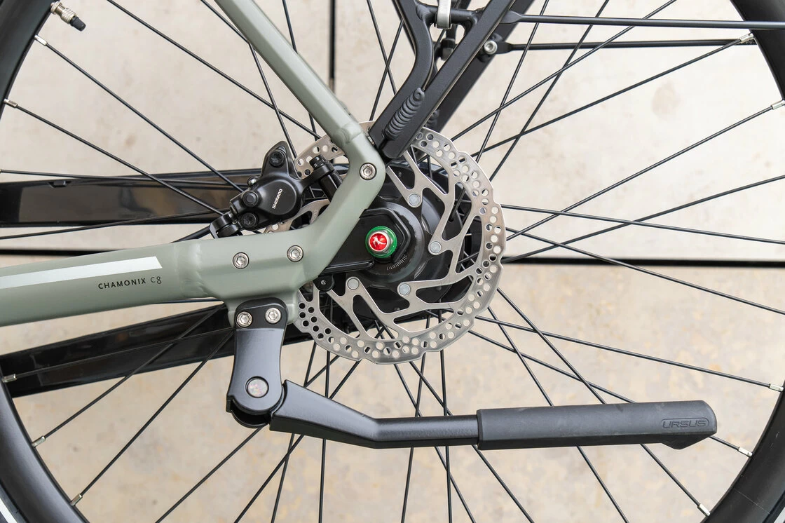 Piasta planetarna Shimano Nexus 8. W tylnej piaście znajduje się 8 biegowa planetarna piasta Shimano Nexus 8. 308% zakresu przełożeń daje nam możliwość bardzo szybkiej jazdy po prostej do granicy kadencji ok 45 km/h, a najniższe biegi pozwolą spokojnie wjechać pod górę o nachyleniu do 20°. Największą zaletą biegów w piaście jest długowieczność, mechanizm planetarnych zębatek działa w środowisku zamkniętym, chronionym przed piaskiem, kurzem i warunkami atmosferycznymi. W mieście docenimy możliwość zmiany biegów na postoju, w czasie postoju na światłach spokojnie możemy zmieniać biegi i ruszyć z lekkiego biegu pierwszego.