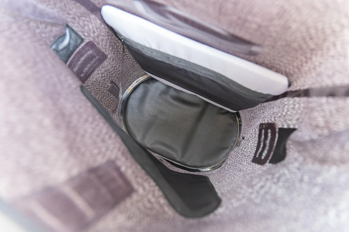 Przestronna komora główna: Wyściełane dno i tylny panel komory głównej gwarantują bezpieczne przechowywanie rzeczy, a wewnętrzna kieszeń pozwala na uporządkowanie drobnych przedmiotów.