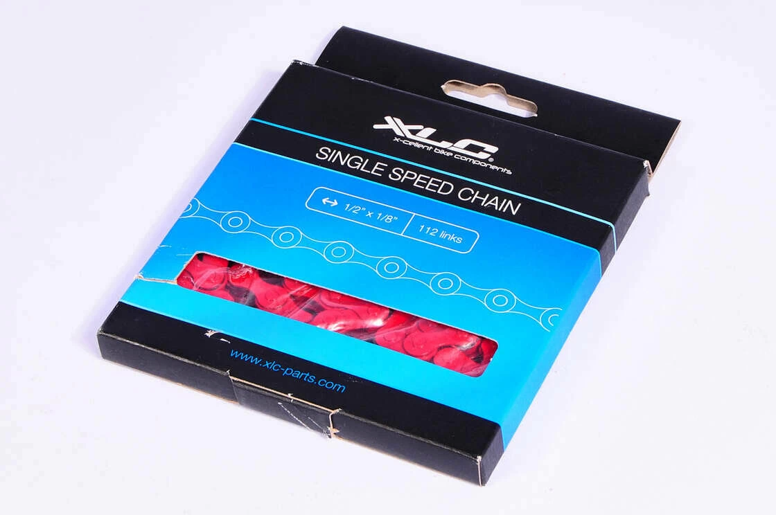 Łańcuch rowerowy XLC CC-C09 1v, o dużej wytrzymałości, dostępny w szerokiej gamie żywych kolorów, nadaje się do wszystkich rowerów jednobiegowych, w tym BMX, trialowych, freestyle i torowych.