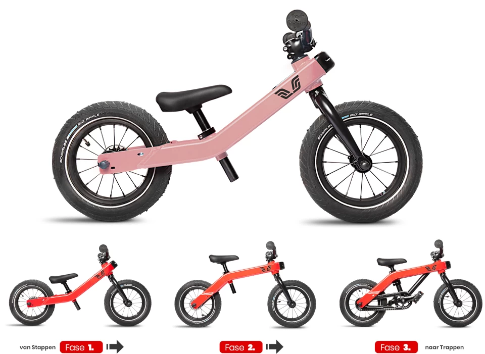 Etap Trzeci: Pierwszy rower z pedałami, który pozwala dzieciom na pełne doświadczenie jazdy na rowerze bez potrzeby korzystania z kółek bocznych. Nie tylko dziecko poprzez poprzednie etapy ma już wyrobiony zmysł równowagi ale również jest już zapoznane z pojazdem na którym będzie jeździć.