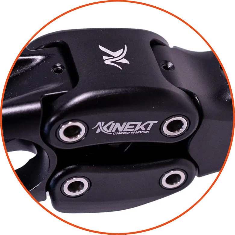 Wspornik kierownicy Kinekt to innowacyjne rozwiązanie zaprojektowane w celu zwiększenia komfortu i redukcji obciążeń ramion, nadgarstków oraz barków podczas jazdy rowerem. Dzięki opatentowanemu systemowi Active Suspension Stem wspornik zapewnia 15-20 mm skoku, co znacząco redukuje drgania o wysokiej częstotliwości przenoszone na kierownicę na nierównym terenie. Dostępny w trzech wersjach: 90 mm, 105 mm i 120 mm, każda o kącie nachylenia 7 stopni oraz średnicy obejmy 31.8 mm. W zestawie znajdują się trzy wymienne sprężyny (Soft, Medium - zamontowana, Firm), które można łatwo dostosować do stylu jazdy i warunków terenowych. Wspornik Kinekt nie tylko poprawia kontrolę nad rowerem i widoczność, ale także wspiera naturalną pozycję ciała, zmniejszając zmęczenie, ból karku i drętwienie. Jest znacznie lżejszy od tradycyjnego widelca amortyzowanego, a dzięki kompaktowej konstrukcji i solidnym materiałom gwarantuje trwałość i niezawodność na długi czas.
