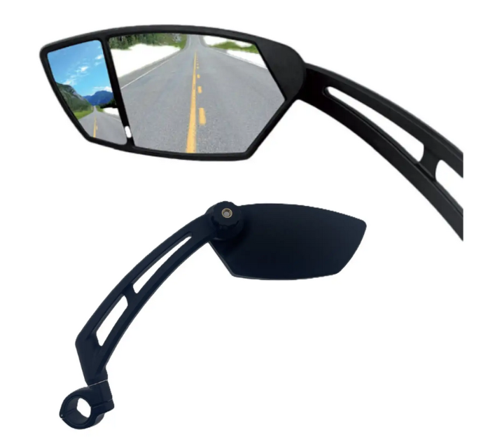Lusterko rowerowe Mirage DeLuxe Duo to wysokiej jakości lusterko rowerowe montowane po lewej stronie kierownicy, zaprojektowane z myślą o bezpieczeństwie i maksymalnej widoczności. Wyposażone w sferyczne (convex) szkło, zapewnia szerokie pole widzenia, zmniejszony obraz bez zniekształceń oraz lepszą orientację w ruchu drogowym.