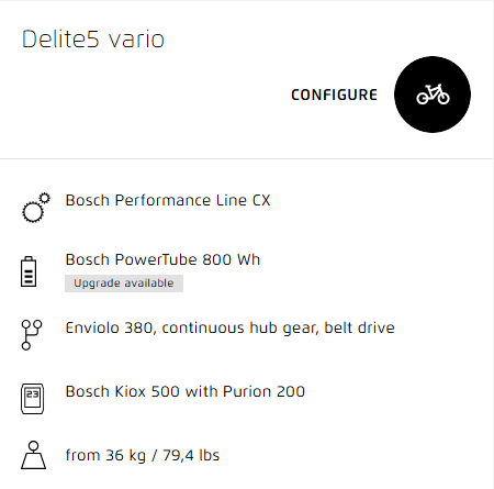 Specyfikacja KONFIGURATOR: Rower elektryczny na pasku Riese & Muller Delite 5