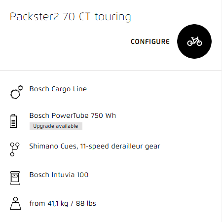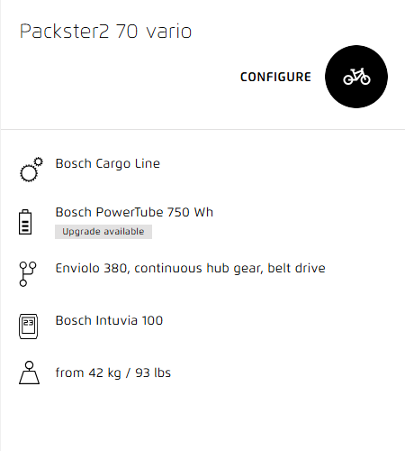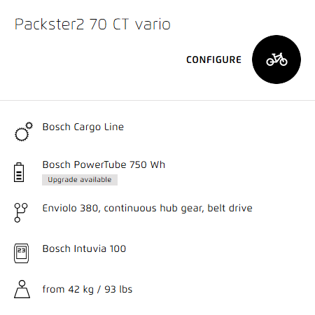 Specyfikacja KONFIGURATOR: Transportowy rower elektryczny cargo Riese & Muller Packster 2 70