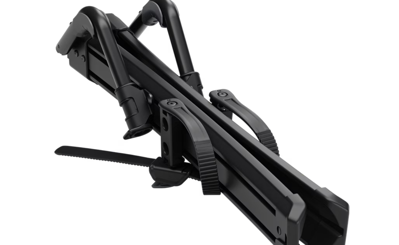 Ramię rowerowe posiadające zamykane paski z którym bezpiecznie zamocujesz dodatkowy rower do pozostałych (zamek w zestawie, kompatybilny z systemem Thule One-Key)