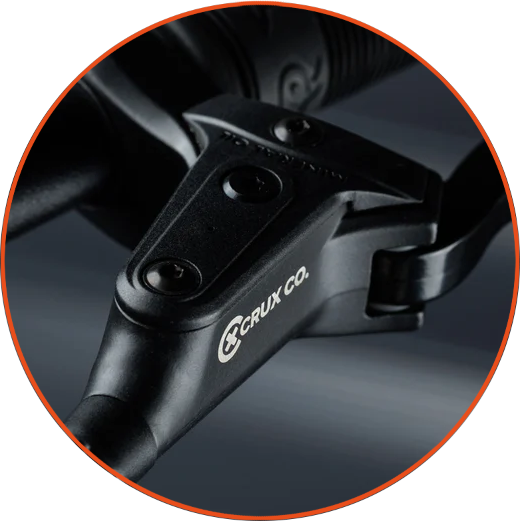 HAMULCE HYDRAULICZNE CRUX oferują dużą siłę hamowania co zapewnia bezpieczeństwo i pewność jazdy. Klamki hamulcowe są lekkie i regulowane, tak aby dobrze pasowały do mniejszych dłoni. Tarcze hamulcowe 140 mm o wadze 65 g są idealnym wyborem do tego roweru.