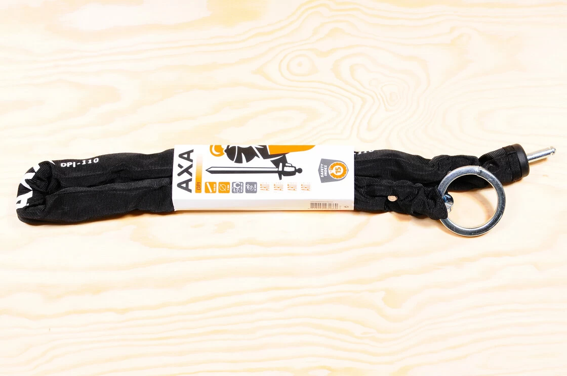 Łańcuch AXA DPI 110 wykonany ze stali hartowanej powlekany materiałem nylonowym to najbezpieczniejsze zabezpieczenie posiadające możliwość zintegrowania (wczepienia) z podkową tylnego koła AXA Defender, Solid czy najnowszego modelu Fusion.