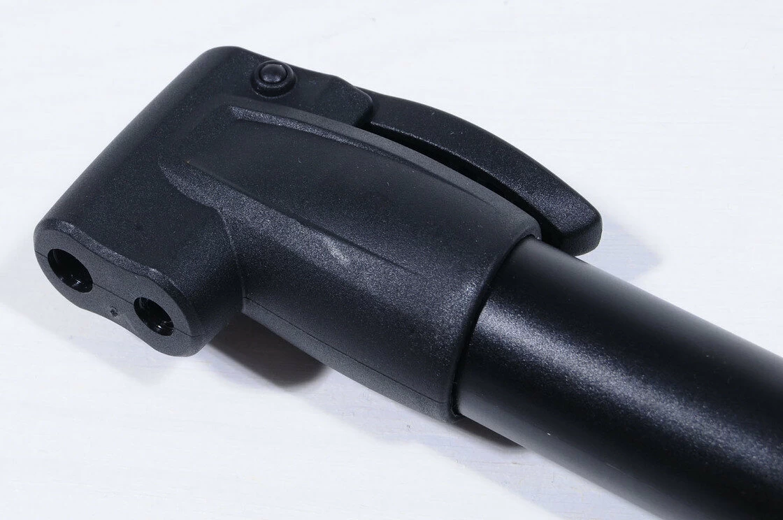 Lekka pompka teleskopowa z rozkładanym uchwytem w kształcie litery "T". Dzięki dużemu skokowi tłoka, jesteśmy w stanie szybkonapompować oponę.