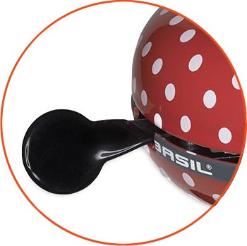 Basil Polkadot to seria akcesoriów charakteryzująca się wzorem w popularne kropki. Dzwonek DING DONG to niepowtarzalny produkt, który zaskakuje swoim wykonaniem. Metalowy dzwonek został pięknie ozdobiony, dodatkowo dźwignia została pokryta gumą aby zwiększyć przyczepność do palca. Poprzez swoje wykonanie, kolorystykę oraz średnicę 80 mm, dzwonek będzie stanowił centralny punkt na kierownicy. Produkt odznacza się unikatowym, donośnym dźwiękiem alpejskiej milki. Idealne narzędzie do rozpraszania pieszych ze ścieżek rowerowych, a przy tym jakie urocze. Mocowanie do roweru jest intuicyjne, a sam dzwonek jest uniwersalny, oznacza to, że pasuje do większości kierownic rowerowych na rynku.