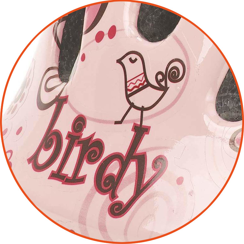 Dziecięcy kask rowerowy Polisport XXS Birdy w kolorze różowym z motywem ptaszków i motylków. Modele kasków Polisport XXS to jedne z najmniejszych rozmiarów na rynku dla najmłodszych dzieci o średnicy główki 44-48 cm. Regulowana obręcz pozwala na dopasowanie kasku do rozmiaru głowy użytkownika. Dodatkowo za komfort jazdy odpowiada 6 otworów wentylacyjnych wraz z moskitierą. Ogromną zaletą kasku jest wyściółka, którą można wyjąć i wyprać.