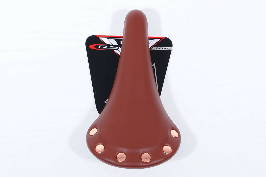 Brązowe siodełko rowerowe GES Retro Fixy przeznaczone do jazdy w pozycji pochylonej. Idealne rozwiązanie do szybkich rowerów miejskich typu ostre koło czy street.