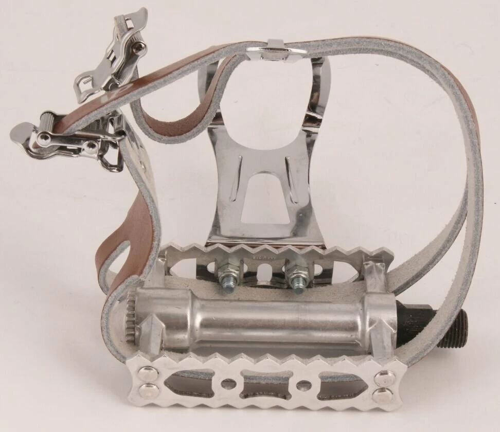 Klasyczne pedały Retro VP365T z noskami i skórzanymi paskami. Idealne pedały do stylowych rowerów miejskich, a także do szybkich szos i ostrych kół.