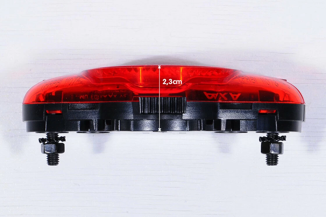 Tylna lampka rowerowa AXA Spark na baterie, przeznaczona do montażu na tylnym bagażniku. AXA Spark to bardzo charakterystyczna lampka o kompaktowym wyglądzie, jej głębokość to tylko 22,2 mm. Budowa klosza lampki sprawia, że oferuje ona nam widoczność także z boku co maksymalnie zwiększa bezpieczeństwo.