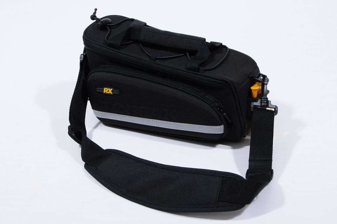 Sakwa rowerowa Topeak MTX TrunkBag EX - Zwarta konstrukcja z dwoma komorami bocznymi dla zwiększenia objętości. Sztywna pianka izoluje i zachowuje aerodynamiczny kształt torby. Pasuje do systemu RX QuickTrack™.