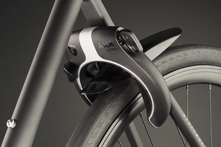 Blokada koła AXA Victory to najnowsza podkowa holenderskiej firmy. AXA Victory to całkowicie nowy standard zabezpieczeń tylnego koła. To pierwsze na świecie zabezpieczenia typu Frame-Lock posiadające w pełni spawane stalowe elementy wewnętrzne, co maksymalnie zwiększa poziom bezpieczeństwa i wytrzymałość na ingerencję w blokadę. Dodatkowo blokada zyskała całkowicie nowy deisgn i kształt kluczyka.