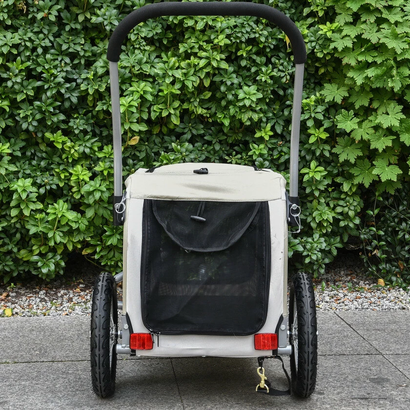 Przyczepka rowerowa do transportu niedużego psa Monz Mini Hunde z pompowanymi oponami o średnicy 12". Mocna niemiecka konstrukcja oparta na stalowej ramie i obręczach oraz pokrowca wykonanego z wodoodpornego i bardzo wytrzymałego poliestru 600D. Przyczepka Monz Mini Hunde posiada funkcję przyczepki rowerowej oraz wózka spacerowego z dodatkowym przednim kółkiem i uchwytem do prowadzenia.