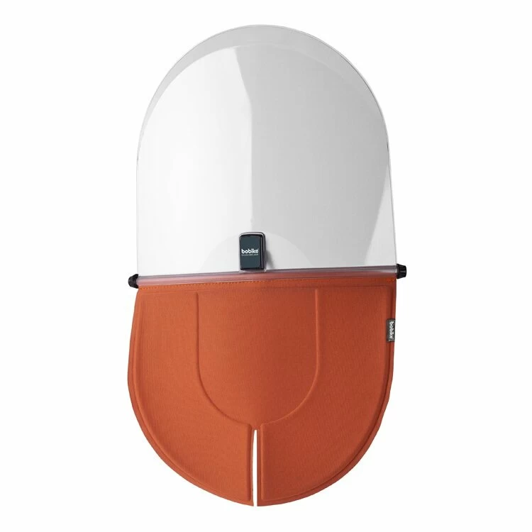 Szyba z fartuchem do przedniego fotelika rowerowego Bobike Mini One. Chroni dziecko przed wiatrem, kurzem i owadami.