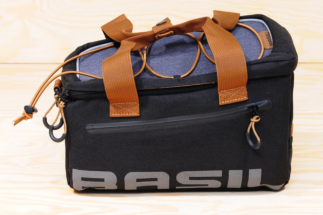 Sakwa na tylny bagażnik rowerowy Basil Miles Trunkbag to produkt posiadających wiele małych kieszeni oraz jedna duża przegrodę, co powoduje że jest niezwykle ergonomiczna i funkcjonalna. Pojemność tej sakwy wynosi 7 litrów, co wystarcza na spakowanie do niej najpotrzebniejszych rzeczy.. Sakwa wykonana jest z wodoodpornego materiału w standardzie IPX3, co oznacza że przy normalnym deszczu materiał przesiąka dopiero po 24 godzinach ciągłego opadu. Sakwa może być wykorzystywana na bagażnikach rowerów klasycznych oraz elektrycznych, które wyposażone są w systemy MIK, Racktime, iRack/Carrymore. Boczne szwy pokryte odblaskowym materiałem zapewniają widoczność po zmroku. Na sakwie w jej tylnej części można zawiesić lampkę LED.