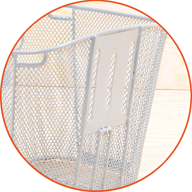 Praktyczny kosz rowerowy wykonany ze stalowej siatki