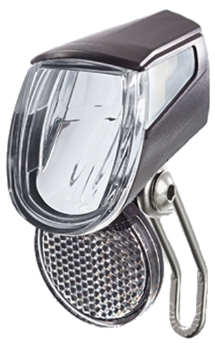 Lampka przednia Trelock LS 433 BIKE-I GO do montażu na widelcu z nawierconym otworem bezpośrednio nad kołem. Produkt jest wysokiej jakości zapewniający odpowiednie bezpieczeństwo podczas jazdy po zmroku, jak i również w dzień. Zasilana jest przez dynamo w piaście jak i to tradycyjne, dzięki czemu działa podczas jazdy rowerem ale też do 4min po zatrzymaniu. Lampka z diodą LED o mocy 30 Lux zapewnia nam pole widzenia na 50m przed rowerem oraz na boki. Porządne wykonanie sprawia, że jest odporna na wodę i wstrząsy.