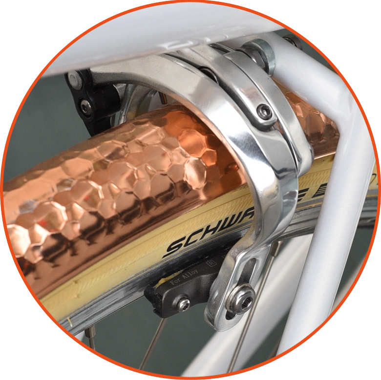Rower miejski Creme CafeRacer 7S Doppio to rower którego ogólna forma przedstawia typowego mieszczucha do przecinania ulic, jednak nic bardziej mylnego! Można by pomyśleć, że to maszyna o tradycyjnym kształcie z standardową 7-biegową przerzutką Shimano Nexus i zwykłym, przednim bagażnikiem, jednak kosmicznie ekstrawagancki styl roweru sprawi, że każde wyjście na przejażdżkę wyróżni Cię na tle miejskiej codzienności. Jazda na nim pobudza jak duży kubek kawy, nie bez powodu w końcu nazywa się CAFERACER. Rama wraz z widelcem zostały pomalowane na anodowy, mocno niebieski kolor z małą, brązową wstawką na której znajduje się logo firmy CREME. Niesamowitą konfiguracje dopełniają miedziane błotniki, bagażnik i nakładki sterów, idealnie wpasowujące się kolorem w styl roweru. Nietypowość roweru również podkreślają chromowane koła, które zostały zaplecione na dwa różne sposoby: tylne tradycyjnie, natomiast przednie na tzw. słoneczko. Reszta komponentów jest chromowana, aby nie tworzyć kontrastu z mocno rzucającą się w oczy ramą. Komfort jazdy zapewnia ręcznie robione z prawdziwej skóry wołowej, najwyższej jakości siodełko Creme. Komponenty jak i design zostały utrzymane na najwyższym poziomie, co wpływa na jego niezawodność oraz komfort, a przy tym rower będzie się świetnie prezentował i mocno rzucał się w oczy.