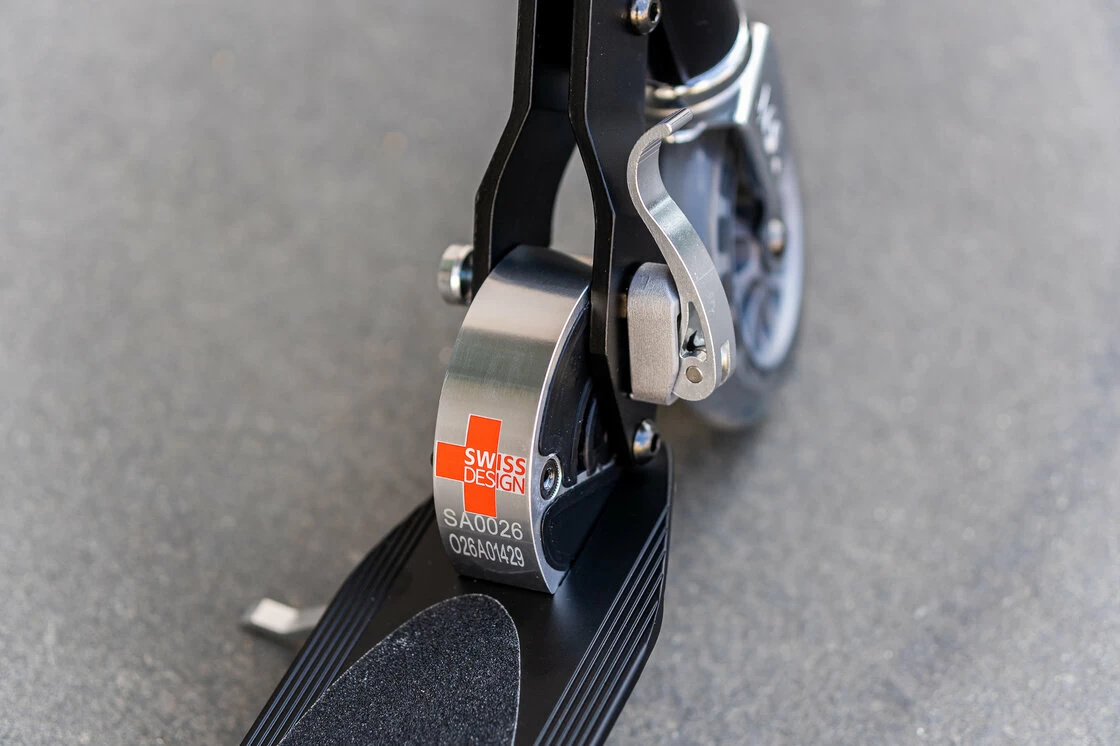 Prosty mechanizm składania, dzięki któremu przenoszenie i przechowywanie hulajnogi nie sprawia żadnego problemu