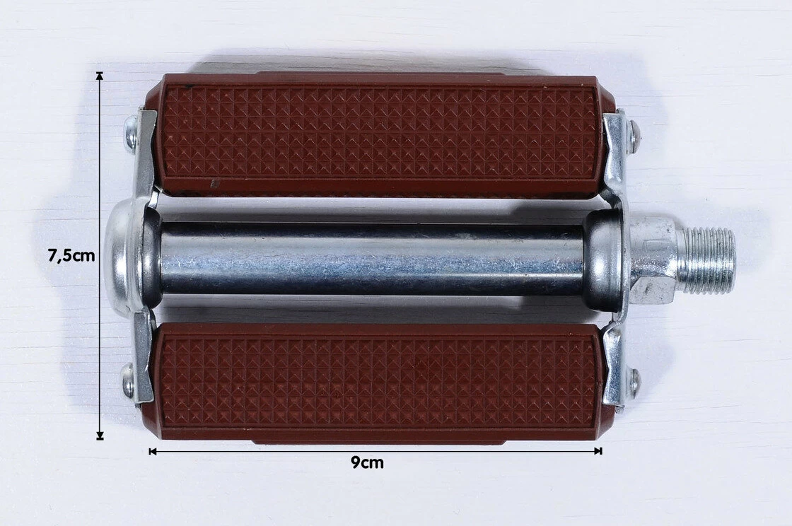 Brązowe pedały rowerowe Union SP-685H klasyczne i bardzo trwałe. Z tradycyjnym gwintem 9/16" pasującym do wszystkich rowerów miejskich na rynku.