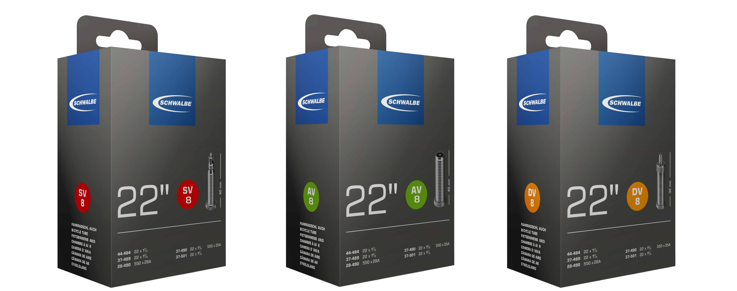 System wielozakresowości rozmiarów dętek. Wysoka elastyczność i jakość pozwala na dopasowanie dętki do bardzo wielu rozmiarów opon. Na przykład dętka Schwalbe nr 8 pasuje zarówno do opony o szerokości 28mm jak i 44mm. Tylko dętka o wyjątkowo wysokiej jakości i niezawodności odpowiada tym wymaganiom.