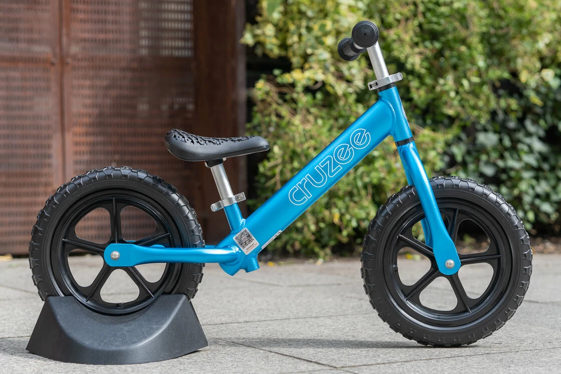 Super lekki rower biegowy CRUZEE 12" z czarnymi kołami inaczej śmigacz czy też balansowy lub najprościej rowerek bez pedałów to doskonała alternatywa dla trójkołowych rowerków dziecięcych i rowerków z kółkami z boku.