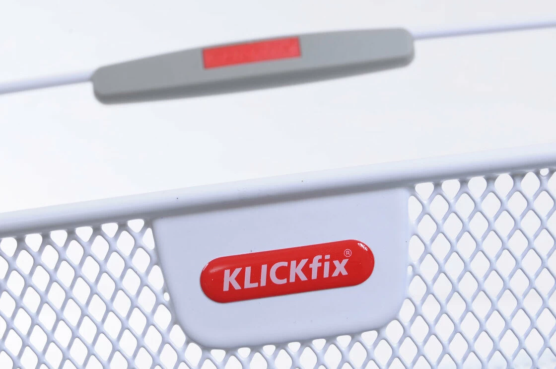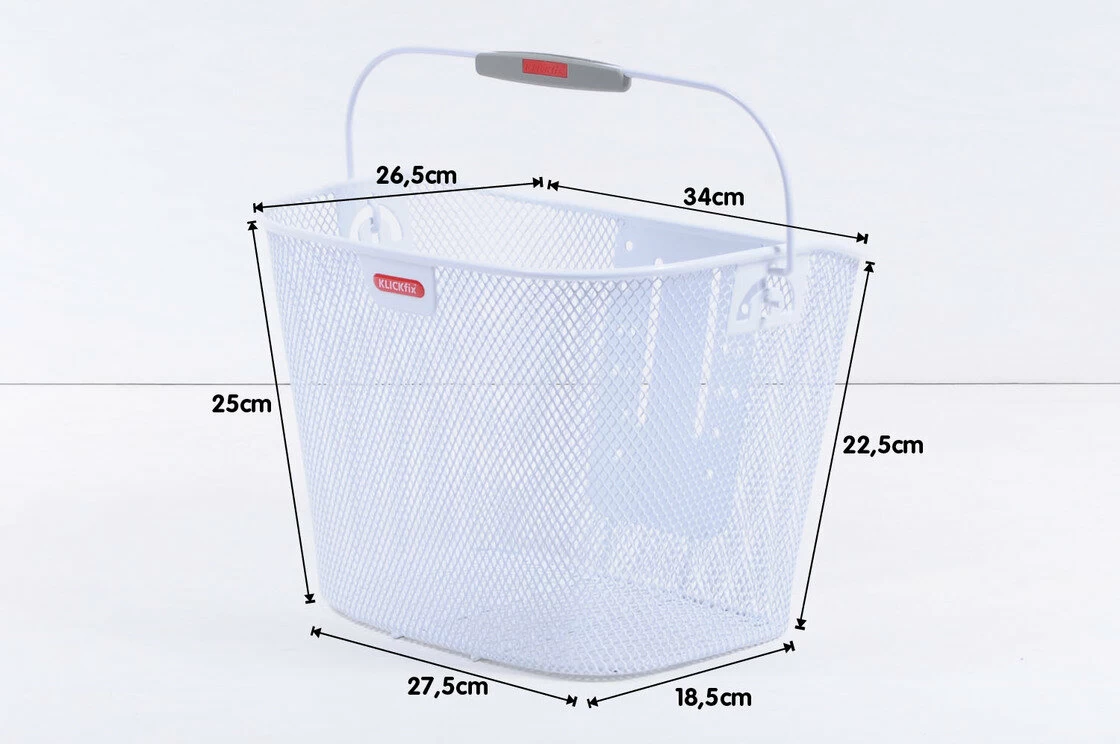Przedni koszyk rowerowy KlickFix Uni Basket to wykonany z siatki klasyczny model koszyka przeznaczony do rowerów miejskich. Koszyk ma pojemność 16 litrów oraz maksymalną ładowność 7 kg (jest to obciążenie jakie może być podczas przenoszenia go w ręce, natomiast przy rowerze należy zapewnić odpowiedni adapter, który pozwoli na takie obciążenie – są to na przykład te modele: uchwyt na kierownice KlickFix, uchwyt na wspornik KlickFix, uchwyt na kierownice z zamkiem ). Koszyk posiada na tylnej ściance uchwyt z regulacją wysokości do adapterów KlickFix.