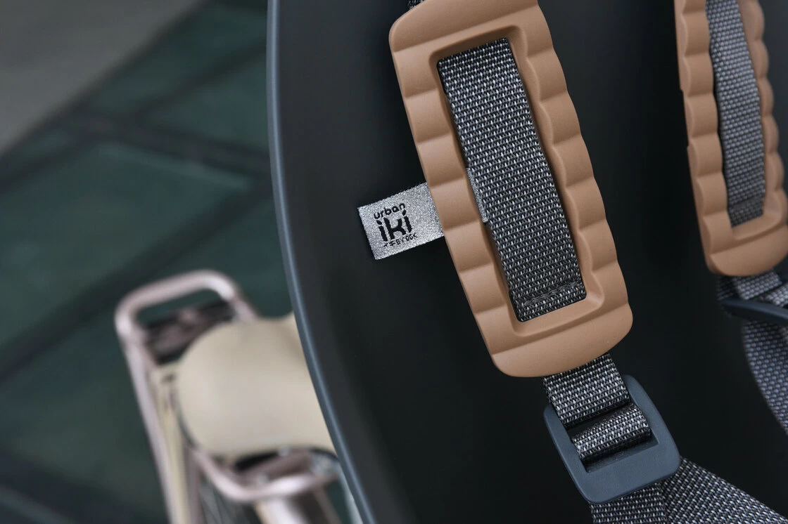 Przedni fotelik rowerowy Urban Iki Stylowy fotelik przeznaczony dla dzieci w wieku od 9 miesięcy do 3 lat (lub od 9 kg do 15 kg). Firma Urban Iki przy produkcji tego fotelika postawiła na bezpieczeństwo oraz stylistykę. Foteliki poza stylowym wyglądem oferują także wysoki poziom bezpieczeństwa – 5-cio punktowe regulowane pasy z miękką gąbką na ramionach, zapięcia na stopy, a także atesty EN 14344 (europejska norma regulująca i normująca wymagania dotyczące fotelików dziecięcych), niezależnego instytutu TÜV, firmy GS oraz atest CE. Do fotelika dołączony jest adapter, który przeznaczony jest do montażu na kierownicy o średnicy od 20 do 28 mm. Adapter posiada przycisk, który pozwala odpiąć fotelik gdy nie będzie potrzebny. Fotelik świetnie sprawdzi się w rowerach miejskich oraz holenderskich.